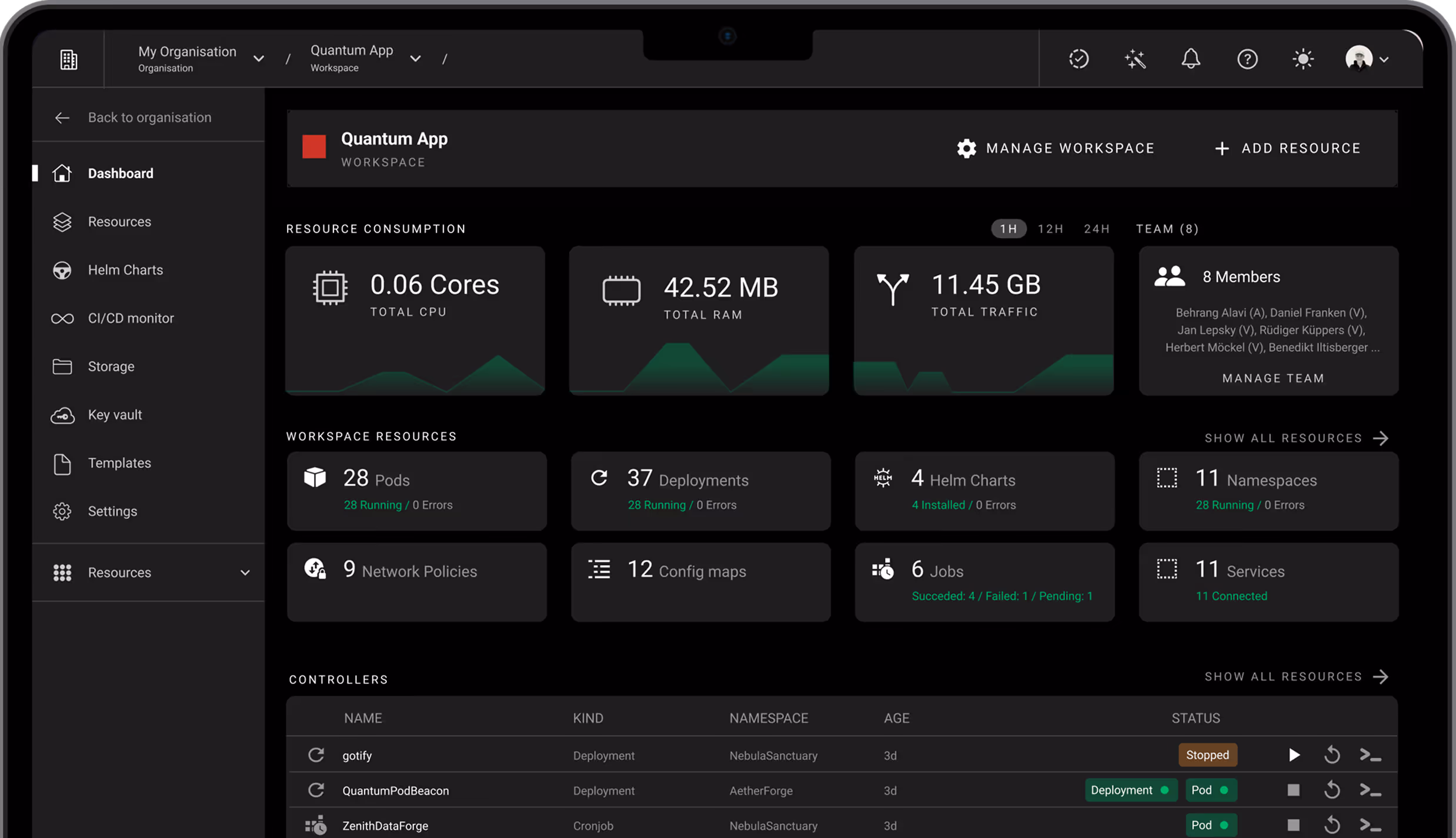 Monitor cluster health, resources, and access rights from a central dashboard.